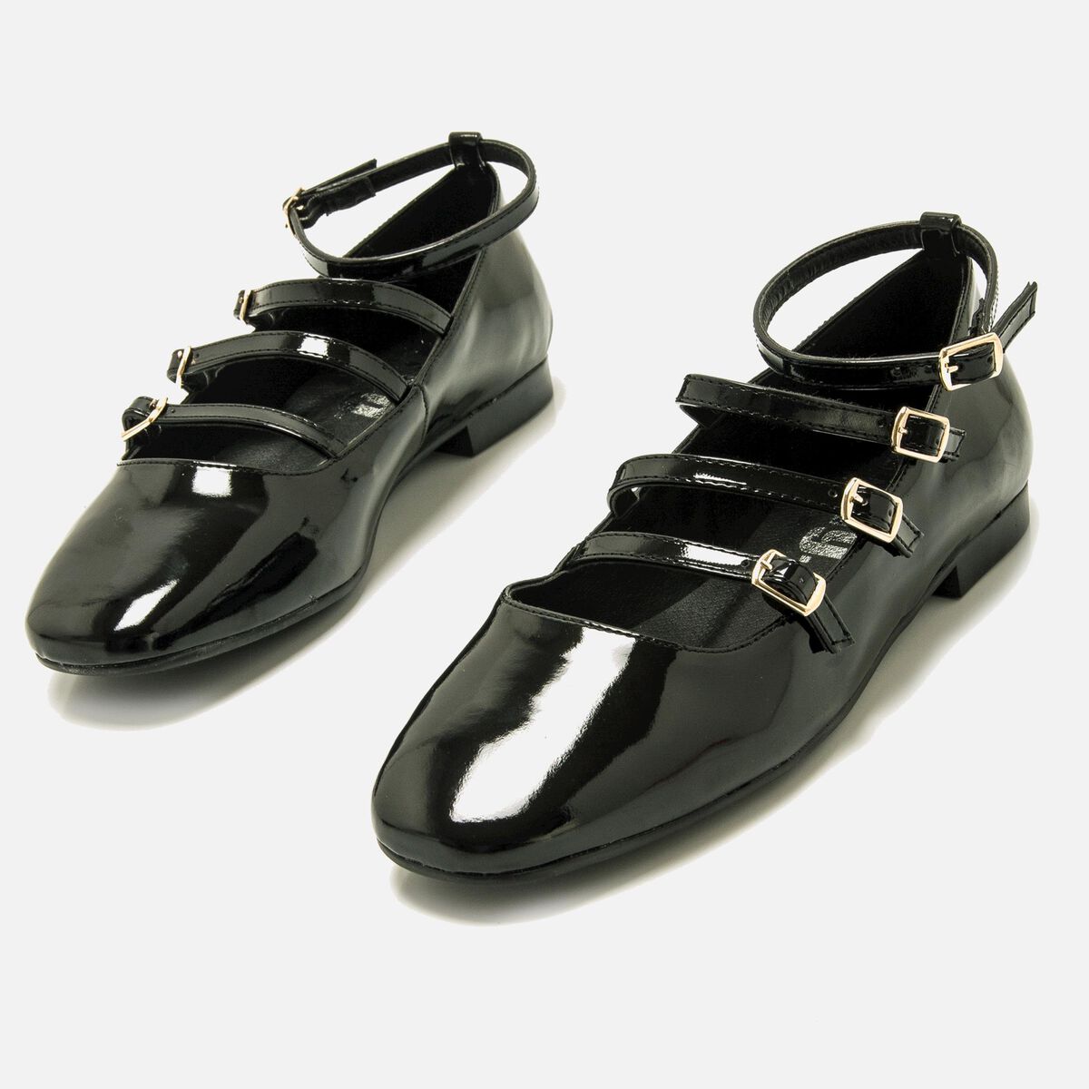 Zapato plano Camille Mustang para mujer, diseño de estilo Mary Jane, destaca gracias a su material efecto charol de color negro. Sus correas en la parte superior proporcionan una sujeción a medida por medio de cierre de hebilla. Un modelo ideal para llevar un toque diferente y de tendencia en tu estilo.