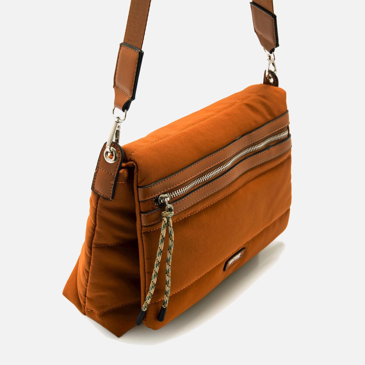 Bolsa Agra para mulher, desenhada em laranja, com um design acolchoado de estilo desportivo. Aba com fecho magnético e marca na parte frontal. Alça ajustável para usar ao ombro ou em formato de tiracolo. Uma bolsa confortável para dar um toque casual e desportivo ao seu look.